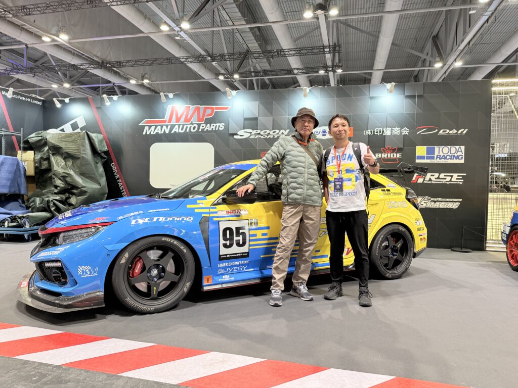 MAN AUTO PARTSのブースでは、2021年のサンダーヒル25時間レースを走ったFK8のレースカー(写真奥)を展示。その隣(写真手前)のS2000は、香港のお客様のSPOONレプリカだとか。ダクトも自作されて本格的です。