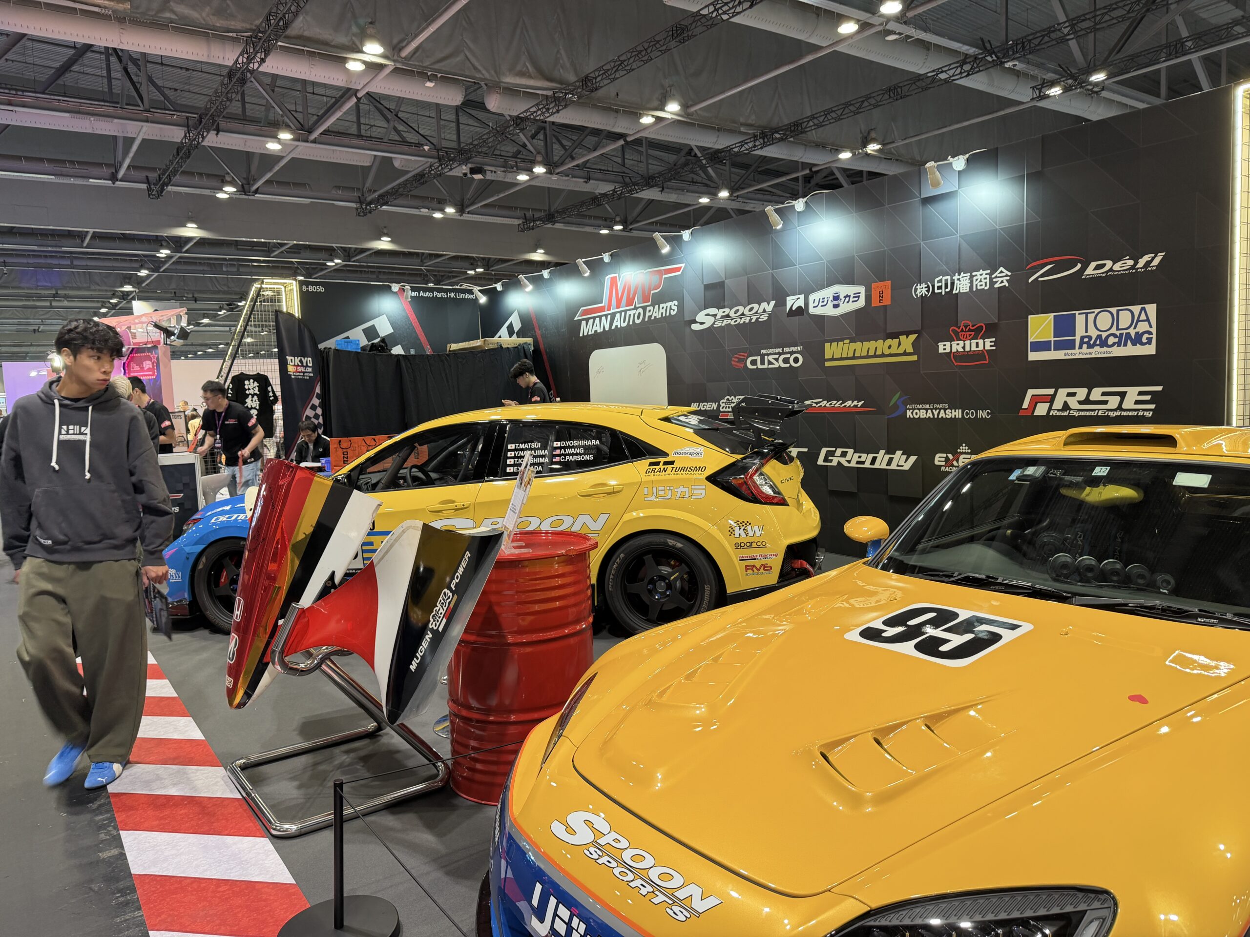 現地販売代理店のMAN AUTO PARTSやコラボレーションでミニカーを開発したPOP RACEの2社のご協力で、2つのブースでSPOON SPORTSを展開しました。