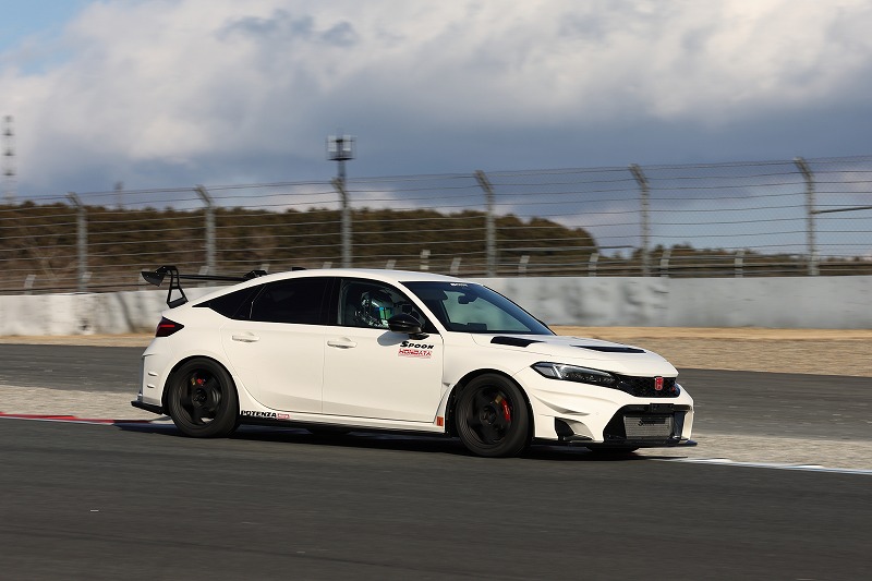 ストリート FL5号はフルエアロとなって初めてのサーキット走行。サーキットを開発の現場とする SPOON にとって、S-TAIフルエアロは、私たちがレースに挑み続ける理由そのものが形になったパーツであり、その成果が結実した存在でもあります。