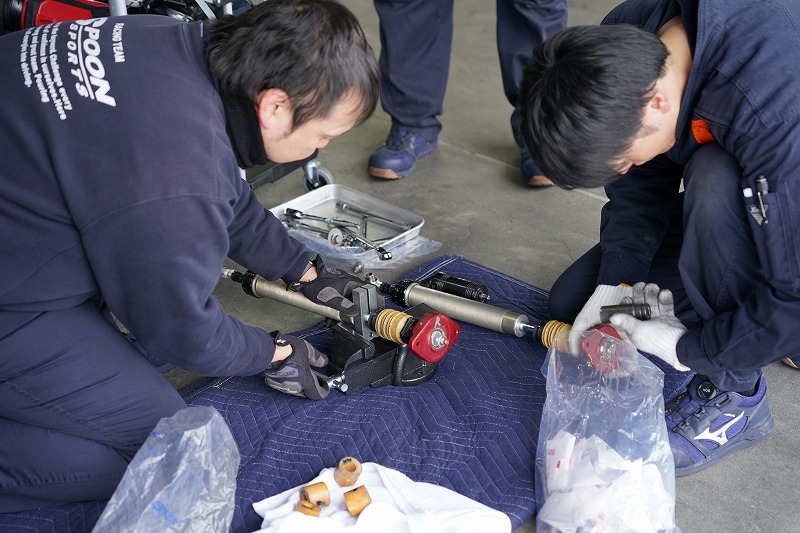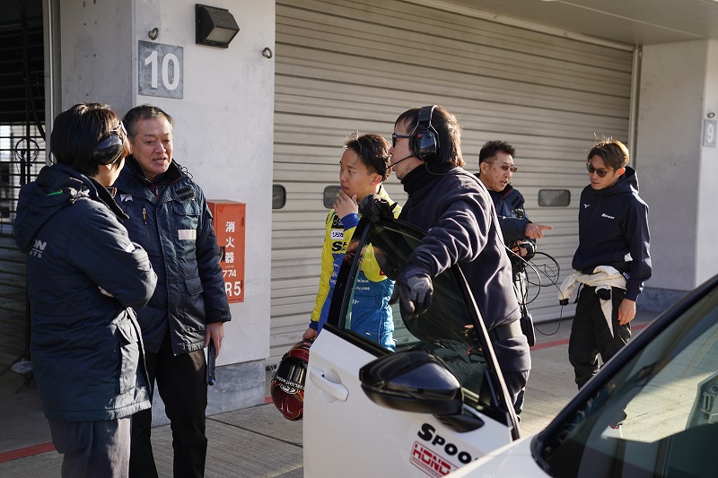 走行では、三井選手、中島選手で TEAM SPOON に新加入の Aドライバー 小松一臣選手をサポート。三井選手と中島選手はそれぞれの経験を活かし、FL5 の特性やレース車両のクセなどを小松選手にアドバイスしていただきました。